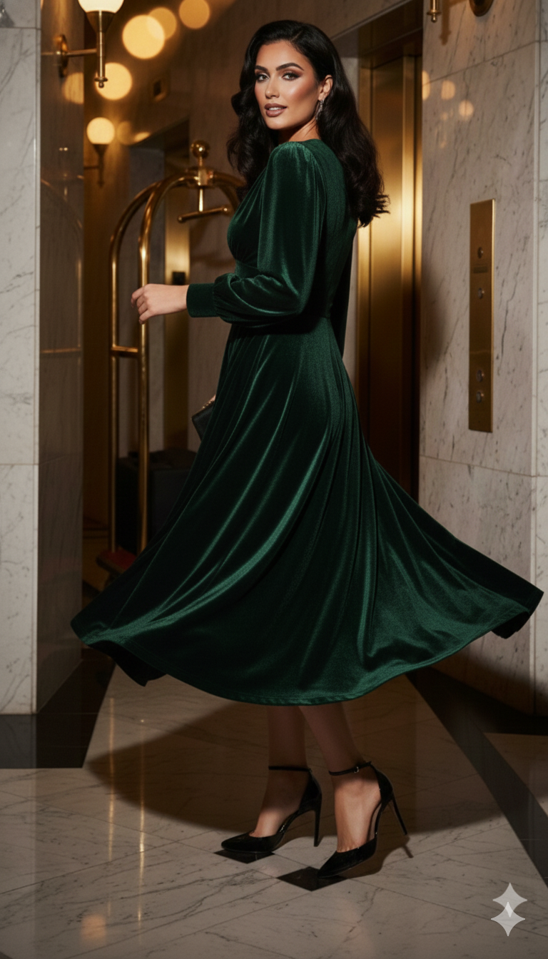 This dress is so flattering on. I am an hourglass figure that ranges from a U.S. size 6 to a 10. I take a Medium in all the dresses I own from this brand. I ordered this one, the solid avodocado green one, and the Bryson blue floral.