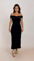 Pre Order: Rhia Black Midi Velvet Fitted Midi Dress
