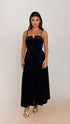 The Ziah Midi Dress is made from double-layer stretch velvet that smooths and supports while keeping its shape. Its fitted bodice cinches the waist and features a notch neckline, faux buttons with adjustable straps for the perfect fit. A flowing A-line skirt with button detailing adds vintage charm, making it ideal for winter weddings, festive parties, and elegant evenings.
