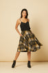 Sophie Khaki Woollen Check Tartan Midi Swing Skirt